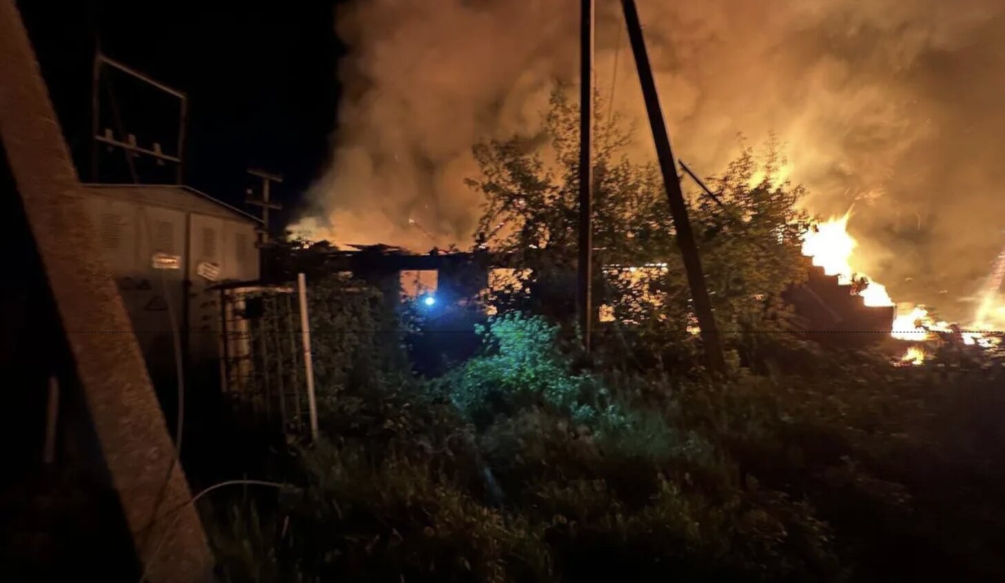 Một ngôi nhà ở Kharkiv bốc cháy sau khi bị hoả lực của Liên bang Nga tấn công. Ảnh: Thống đốc Kharkiv Oleh Syniehubov/Telegram