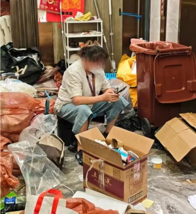 Chị Wang, tầng 15, chia sẻ: "Cả tầng ngập mùi hôi hám, gián chuột chạy loạn. Lên tầng 16 mà không đeo khẩu trang thì không chịu nổi".
