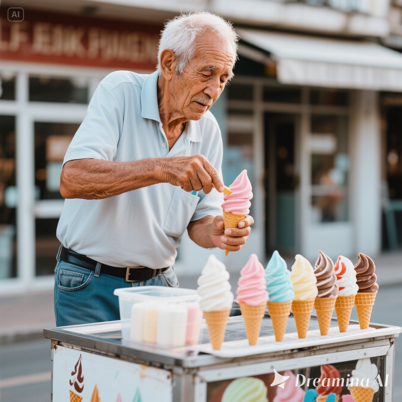 Trên con đường nhỏ, có một ông lão bán kem dạo. Mỗi buổi sáng, ông đạp xe chậm rãi, miệng luôn mỉm cười, hát khe khẽ một bài hát cũ. Không ai rõ ông sống ở đâu, cũng chẳng biết tại sao ông chỉ bán mỗi buổi sáng.