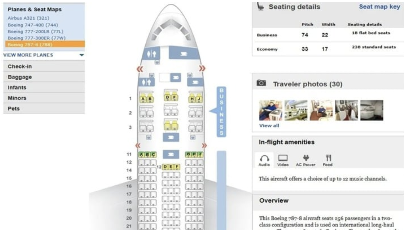 Ghế 11A trên máy bay Boeing 787-8 Dreamliner ở đâu?