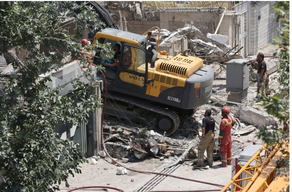 Lực lượng cứu hộ làm việc tại hiện trường một tòa nhà bị hư hại sau các cuộc không kích của Israel tại Tehran. Ảnh: Reuters