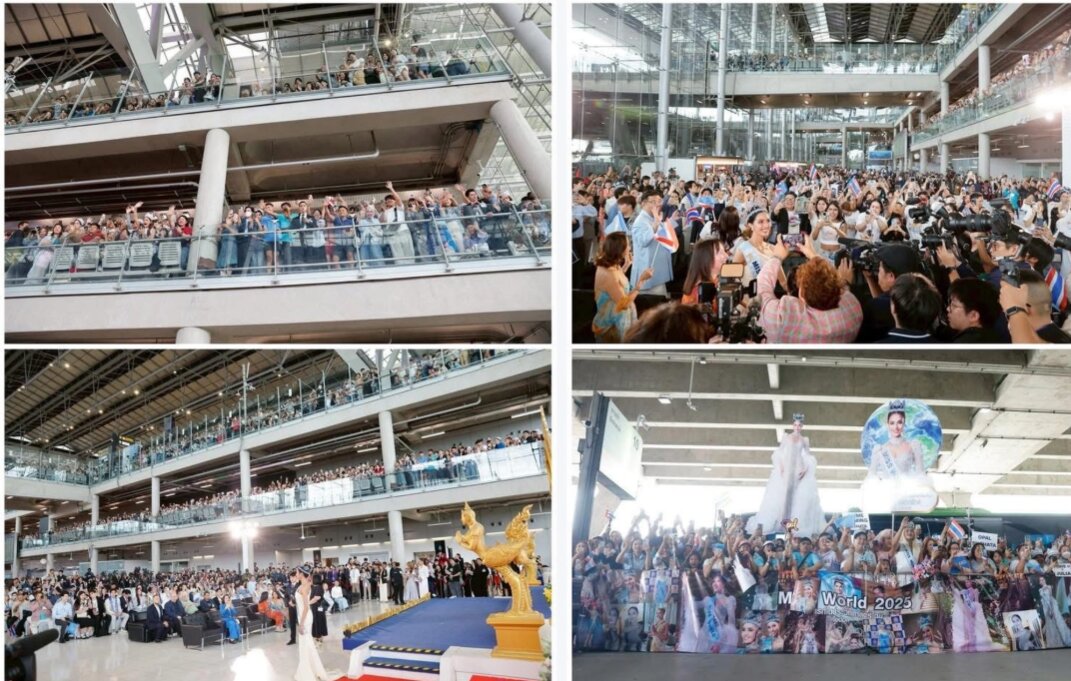 Ngay tại sân bay, hàng nghìn người hâm mộ tại Thái Lan đứng xếp hàng tại sân bay, từ tầng 1 lên tầng 2 để được tận mắt chứng kiến tân Hoa hậu Thế giới. Họ mang theo băng rôn, hoa, quà. Khi đương kim hoa hậu mới xuất hiện, họ vẫy tay, reo hò.