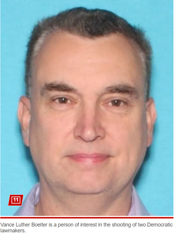 Một Vance Luther Boelter đeo mặt nạ và mặc đồng phục — người được Thống đốc Minnesota Tim Walz bổ nhiệm chính trị — đã bắn Thượng nghị sĩ John Hoffman và vợ ông tại nhà riêng ở Champlin vào sáng sớm thứ Bảy, khiến họ bị thương nghiêm trọng.