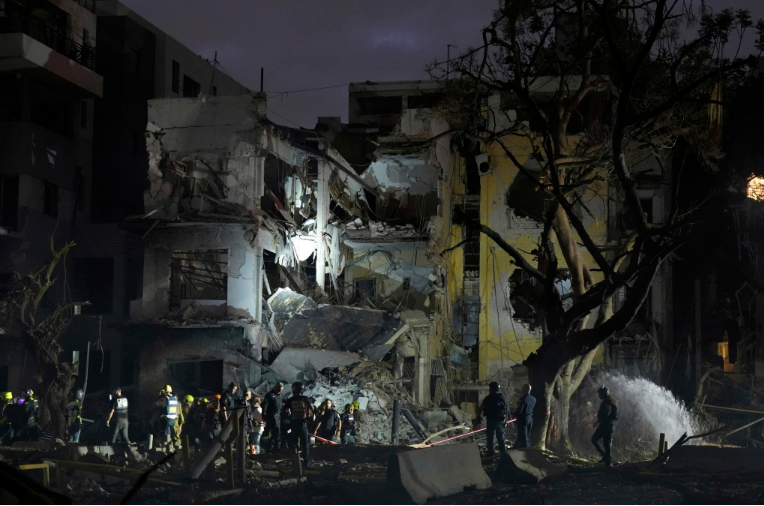 Tòa nhà ở Israel đổ sập sau cuộc tấn công tên lửa của Iran rạng sáng 16/6. Ảnh: AP