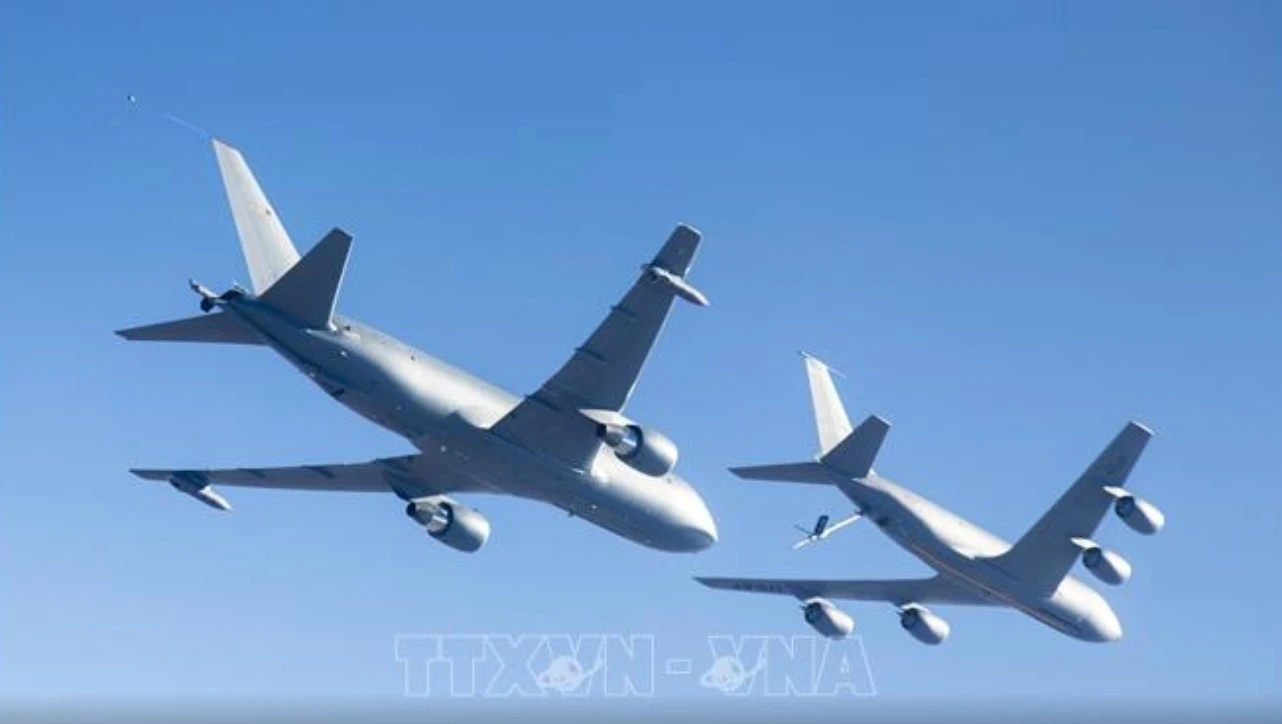 Phi cơ tiếp liêu KC-46 (trái) của Không Lực Hoa Kỳ (Minh họa)