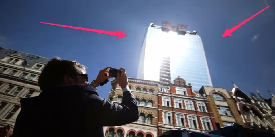 Vào cuối mùa hè năm 2013, khi tòa nhà vẫn đang trong quá trình xây dựng, một cuộc khủng hoảng bất ngờ bắt đầu xuất hiện. Trong những tuần giữa cuối tháng 8 và đầu tháng 9, bức tường kính lớn lõm hướng về phía nam của tòa nhà bắt đầu tập trung ánh sáng mặt trời do độ cao cụ thể của mặt trời trên bầu trời.
