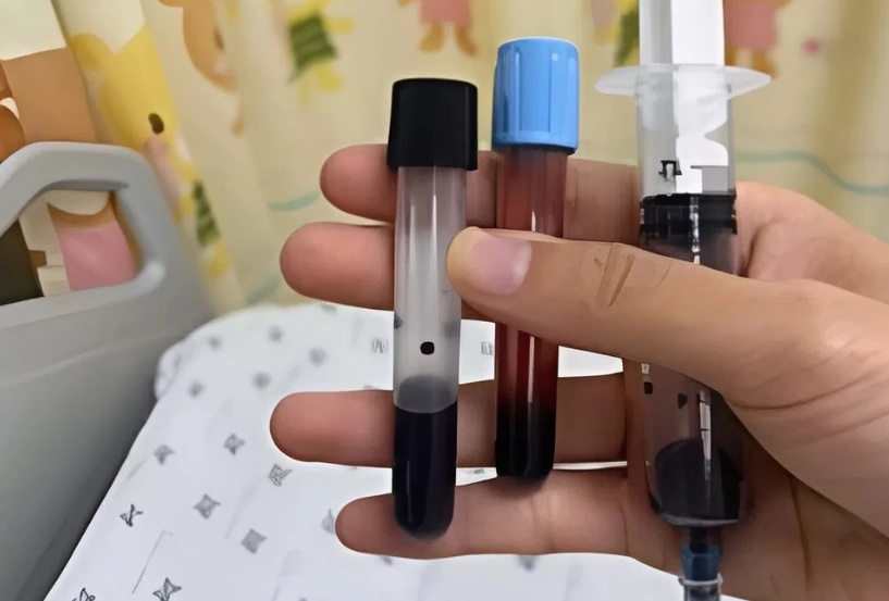 Sau khi loại trừ các nguyên nhân thường gặp, bác sĩ nghi ngờ trẻ bị methemoglobin máu, một rối loạn hiếm gặp khiến hemoglobin trong hồng cầu mất khả năng vận chuyển oxy. Để xác định, bác sĩ thực hiện test mẫu máu tiếp xúc khí trời. Kết quả cho thấy máu có màu đen và không đổi màu khi lắc mạnh, đặc trưng cho tình trạng methemoglobinemia.