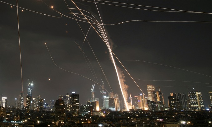 Phòng không Israel đánh chặn tên lửa Iran tại Tel Aviv ngày 13/6. Ảnh: AP