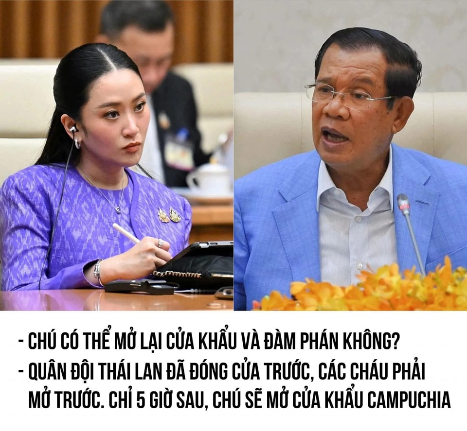 Trong cuộc điện đàm giữa Chủ tịch Thượng viện Hun Sen của Campuchia và Thủ tướng Thái Lan Paetongtarn Shinawatra hôm 15/6 (và được tung lên mạng hôm 18/6), hai người đă xưng hô rất thân mật.