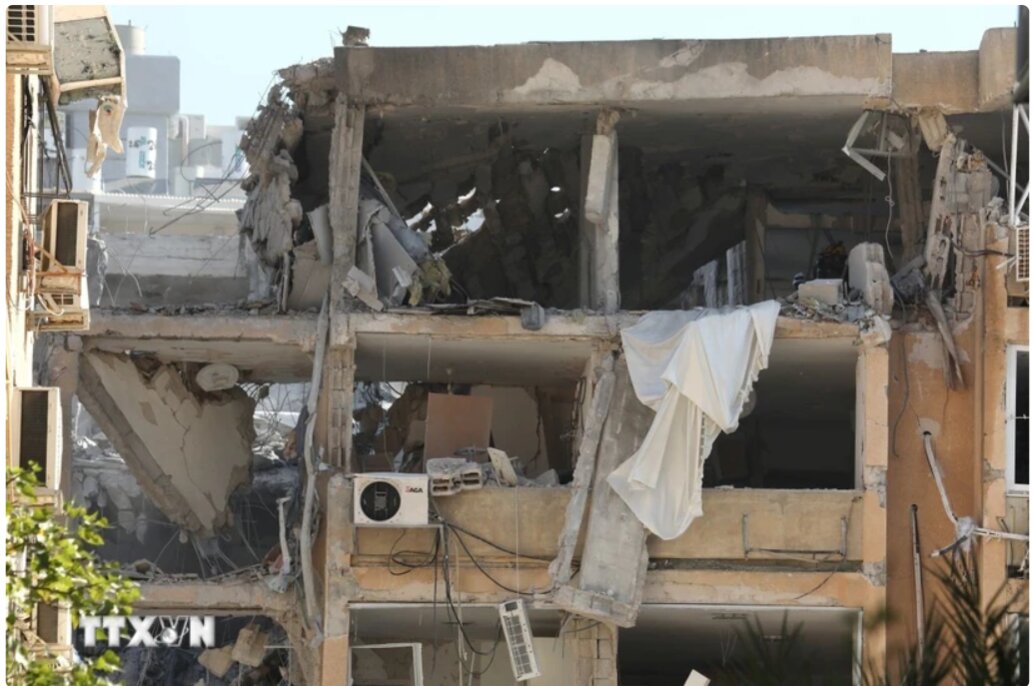 Hiện trường đổ nát sau vụ tấn công bằng tên lửa từ Iran xuống thành phố Holon, miền Trung Israel ngày 19/6/2025.