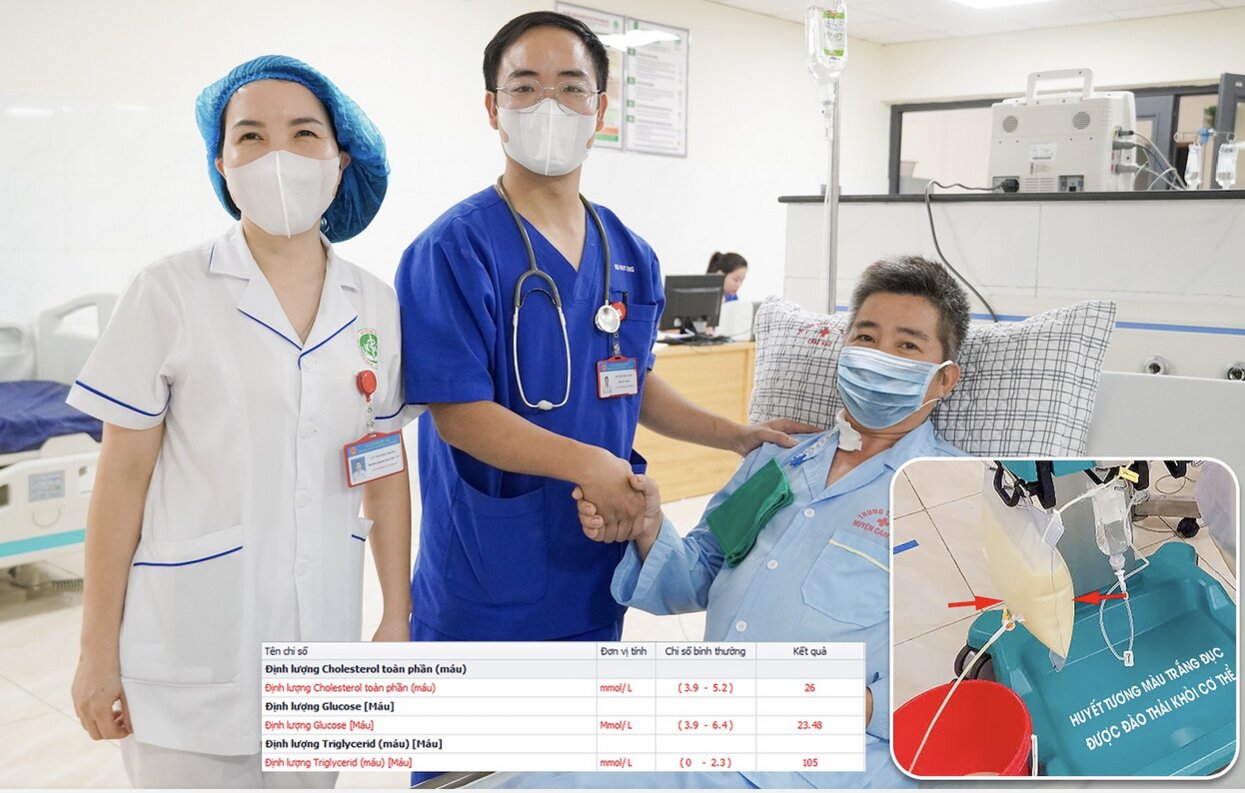 Ngay lập tức, các bác sĩ chỉ định lọc máu và thay huyết tương cấp cứu. Trong 2 giờ can thiệp lọc máu, khoảng 4.500ml dịch màu "đục như sữa", chứa hàm lượng mỡ cực cao đã được loại bỏ khỏi cơ thể bệnh nhân và thay bằng huyết tương tươi. Sau can thiệp, tình trạng đau bụng của bệnh nhân thuyên giảm, các chỉ số sinh tồn dần ổn định. Bệnh nhân xuất viện sau 11 ngày điều trị tích cực.
