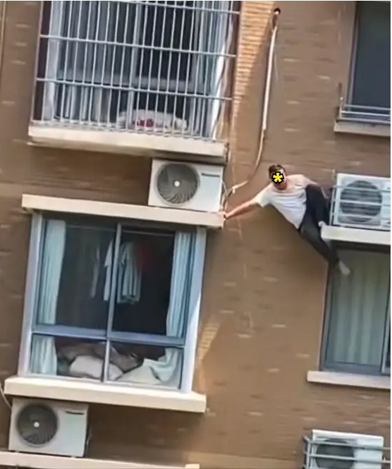 Old  Default Ngoại tình bị phát hiện, người đàn ông đu bám bên ngoài tòa nhà kêu cứu