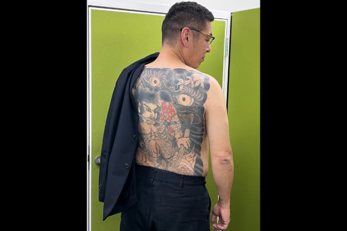 Hình xăm kín lưng của luật sư Yoshitomo Morohashi, cựu yakuza. Ảnh: Guardian