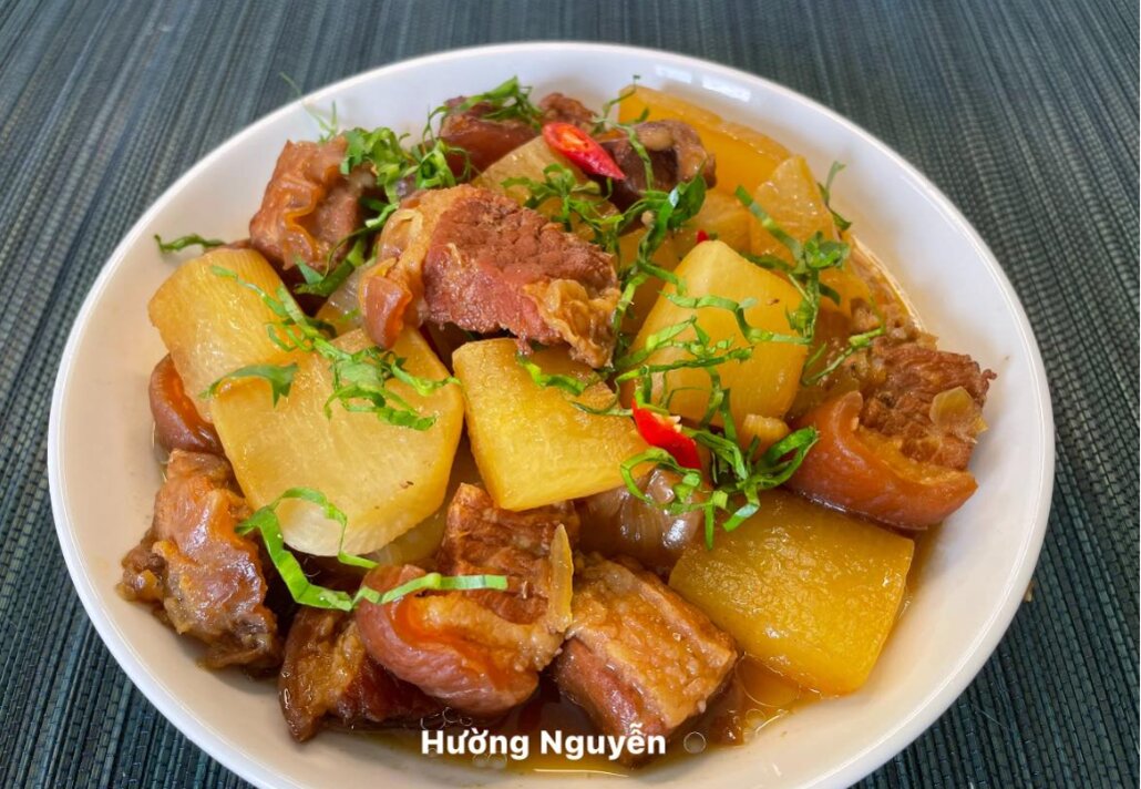 Kho thịt 30 phút thêm củ cải vào kho tới khi chín