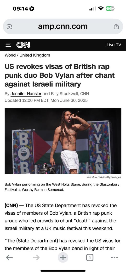 Nhóm nhạc rap Anh Bob Vylan đối mặt nguy cơ bị Mỹ hủy visa sau khi hô khẩu hiệu “Death to the IDF