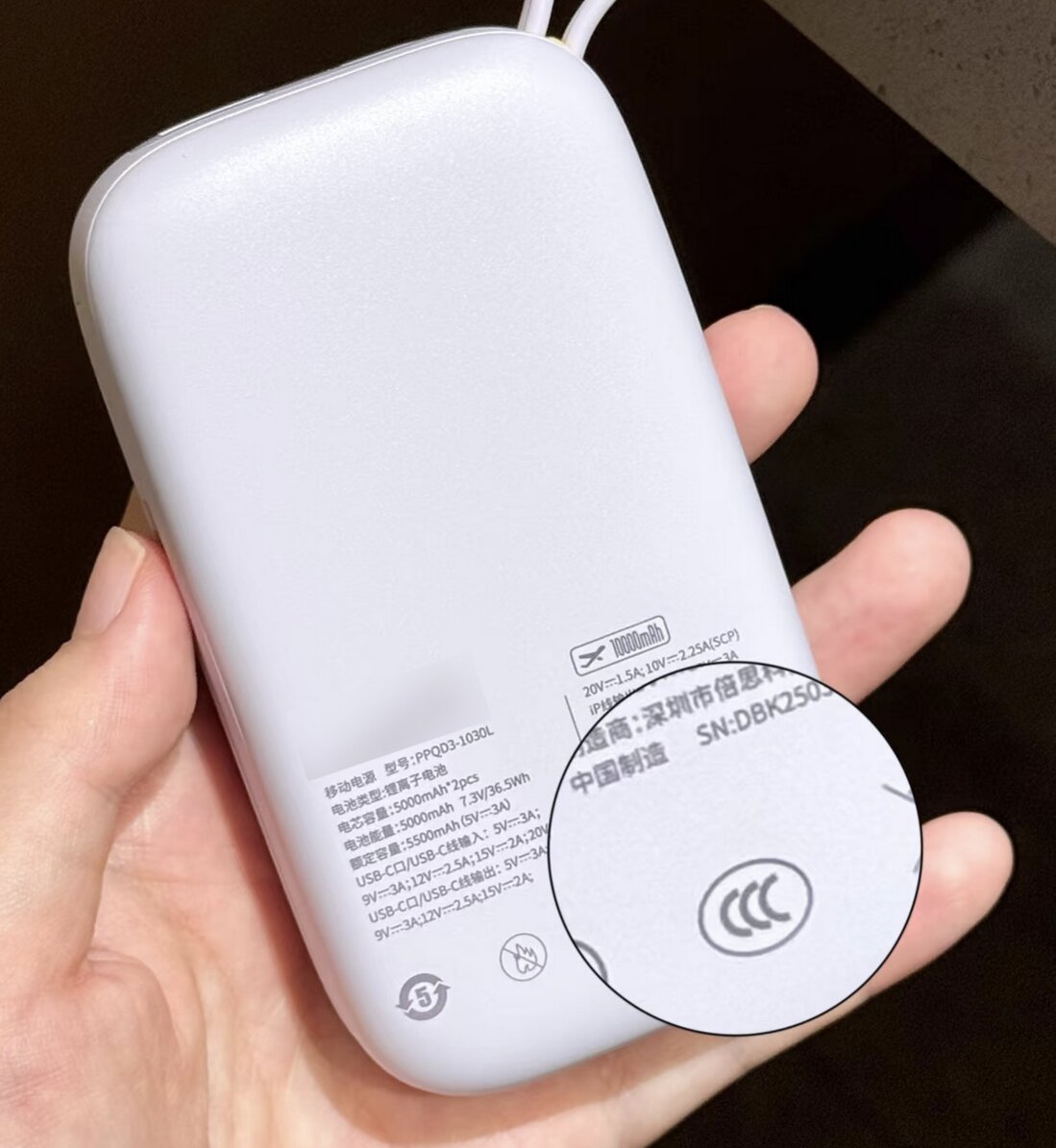 Chứng nhận CCC là China Compulsory Certificate - hệ thống chứng nhận của Trung Quốc. Logo của CCC có hình bầu dục và 3 chữ C ở bên trong hình bầu dục. Chứng nhận CCC đối với pin sạc dự phòng chỉ mới được áp dụng từ tháng 8/2023, có nghĩa là các mẫu pin sản xuất trước thời điểm này có thể không đạt chuẩn và không được phép mang lên máy bay. Theo một người dùng trên Reddit, đến năm 2024, thị trường Trung Quốc sẽ có nhiều mẫu pin dự phòng đạt chứng nhận CCC, còn các mẫu cũ thì không.