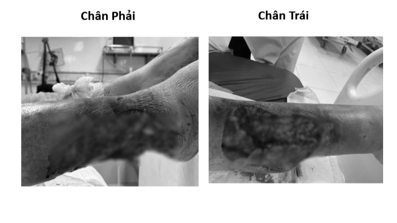 Theo thông tin từ bệnh viện, bệnh nhân có tiền sử đái tháo đường type 2 suốt 12 năm, tăng huyết áp, rối loạn lipid máu và suy vỏ thượng thận do dùng thuốc kéo dài. Trước khi vào viện khoảng 30 phút, trong lúc điều khiển xe máy, bệnh nhân không may bị ngã xe, dẫn đến tổn thương da diện rộng, lộ cả cân cơ ở vùng cẳng chân.
