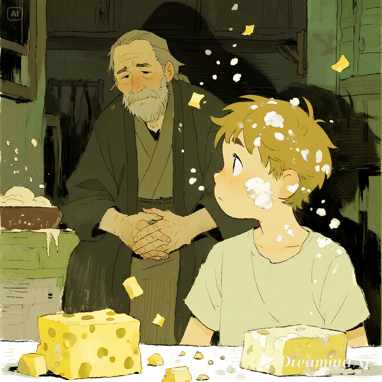 – Học nhóm mà quần áo đầy… bột mì thế kia?