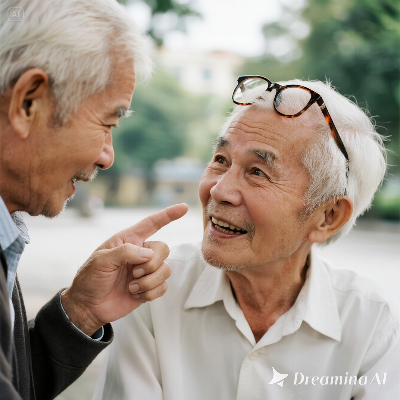 Một sáng, ông Tám gặp người bạn cũ trong công viên.