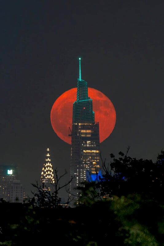 Tuần qua, Mặt trăng Dâu tây hiếm hoi xuất hiện thấp trên đường chân trời mùa hè. Nhiếp ảnh gia Mike Carroll ghi lại khoảnh khắc Mặt trăng tròn mọc sau các tòa nhà Chrysler và One Vanderbilt ở thành phố New York.
