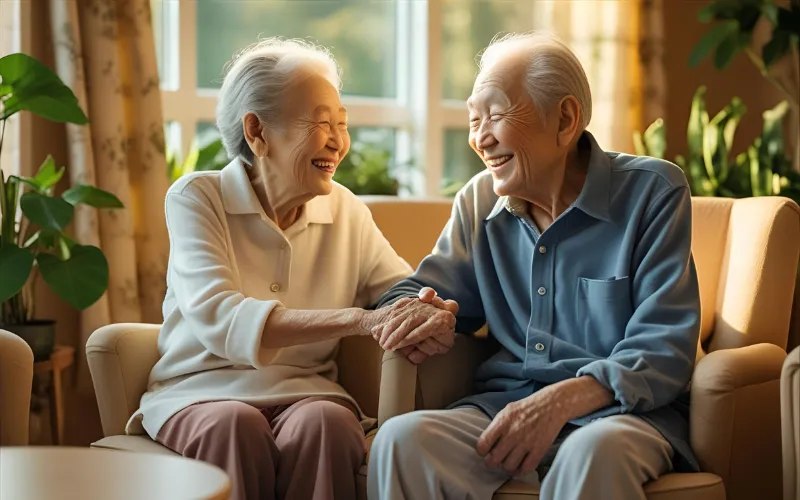 Với cả viện dưỡng lão cũng có đầy đủ mọi thứ vợ chồng tôi cần. Ngoài cơ sở vật chất, sự chăm sóc chuyên nghiệp đến từ các nhân viên thì điều tôi cần nhất chính là tình cảm và y tế. Như đã nói, năm nay tôi đã 78 tuổi, có tiền sử từng đột quỵ, còn vợ tôi cũng đã 75 tuổi. Chúng tôi đã từng bao phen thập tử nhất sinh và nhờ có sự giúp đỡ của hàng xóm nên mới may mắn thoát nạn. Giờ đây, chúng tôi sống trong viện dưỡng lão luôn có bác sĩ thăm non nên rất yên tâm về mặt sức khỏe. Mặt khác, khi vào đây chúng tôi đã được làm quen với rất nhiều người bạn đồng cảnh ngộ. Mỗi sáng, vợ chồng tôi cùng mọi người tập thể dục rồi ăn sáng. Đến chiều, tôi rủ mấy ông bạn già chơi cờ, còn vợ tôi cùng các bà khác tám chuyện, tập múa hoặc ca hát. Tuy chẳng phải người thân, nhưng ít nhất chúng tôi đã mang lại nụ cười cho nhau.