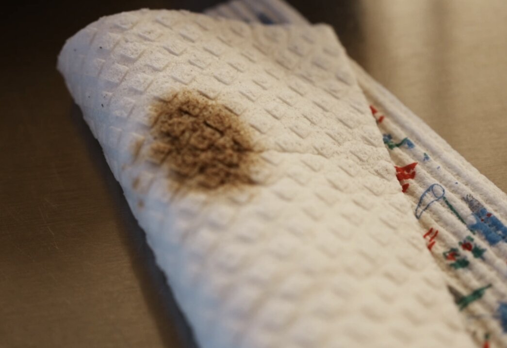 Khăn lau bếp được sử dụng liên tục, tiếp xúc với đủ loại vết bẩn, lại có cấu trúc xốp và ẩm, chẳng khác gì “đĩa petri” nuôi cấy vi khuẩn. Một nghiên cứu ở Trung Quốc đã phát hiện 19 loại vi khuẩn, bao gồm E.coli, tụ cầu vàng, salmonella... trên 1010 chiếc khăn bếp được thu thập ngẫu nhiên.