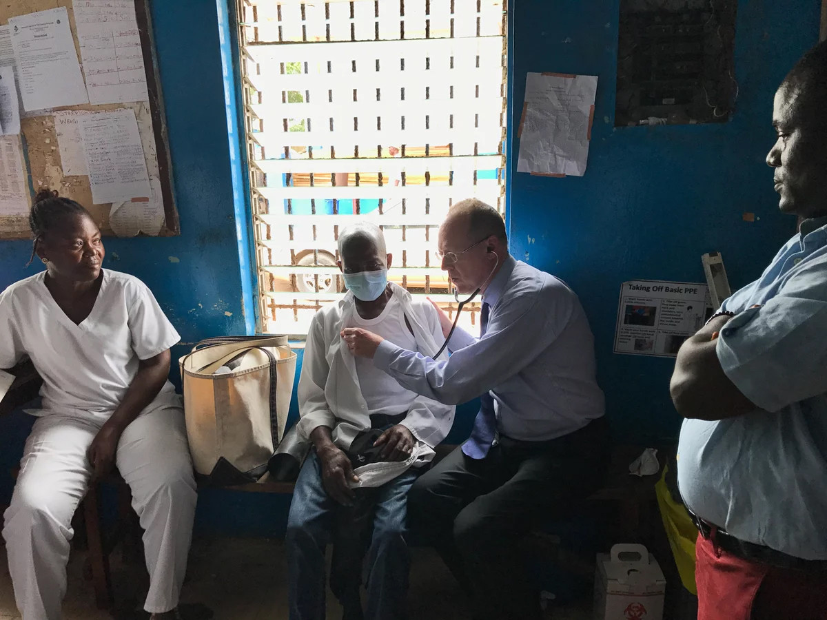 Bác sĩ Farmer khám cho một bệnh nhân lao ở Liberia. Ảnh: PIH