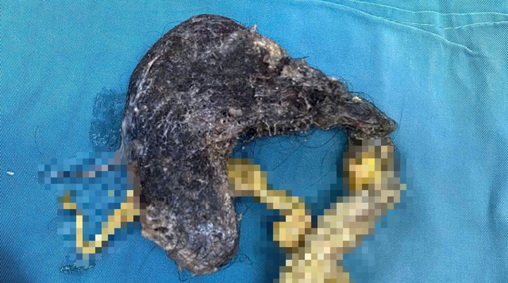 Búi tóc được các bác sĩ phẫu thuật gắp ra khỏi dạ dày bệnh nhân - Ảnh: Bệnh viện cung cấp