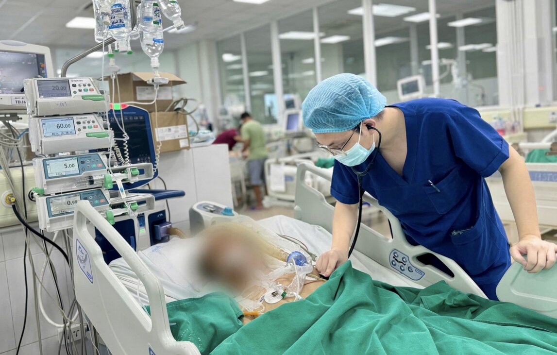 Theo bác sĩ Huy, sau phẫu thuật, bệnh nhân xuất hiện tình trạng nhiễm trùng, xơ gan mất bù và đang được điều trị tích cực. Tuy nhiên, đến ngày thứ ba, ông bất ngờ nôn ra máu ồ ạt, tụt huyết áp nhanh. Đây là các biểu hiện của giãn vỡ tĩnh mạch thực quản - một biến chứng nguy hiểm thường gặp ở người xơ gan.