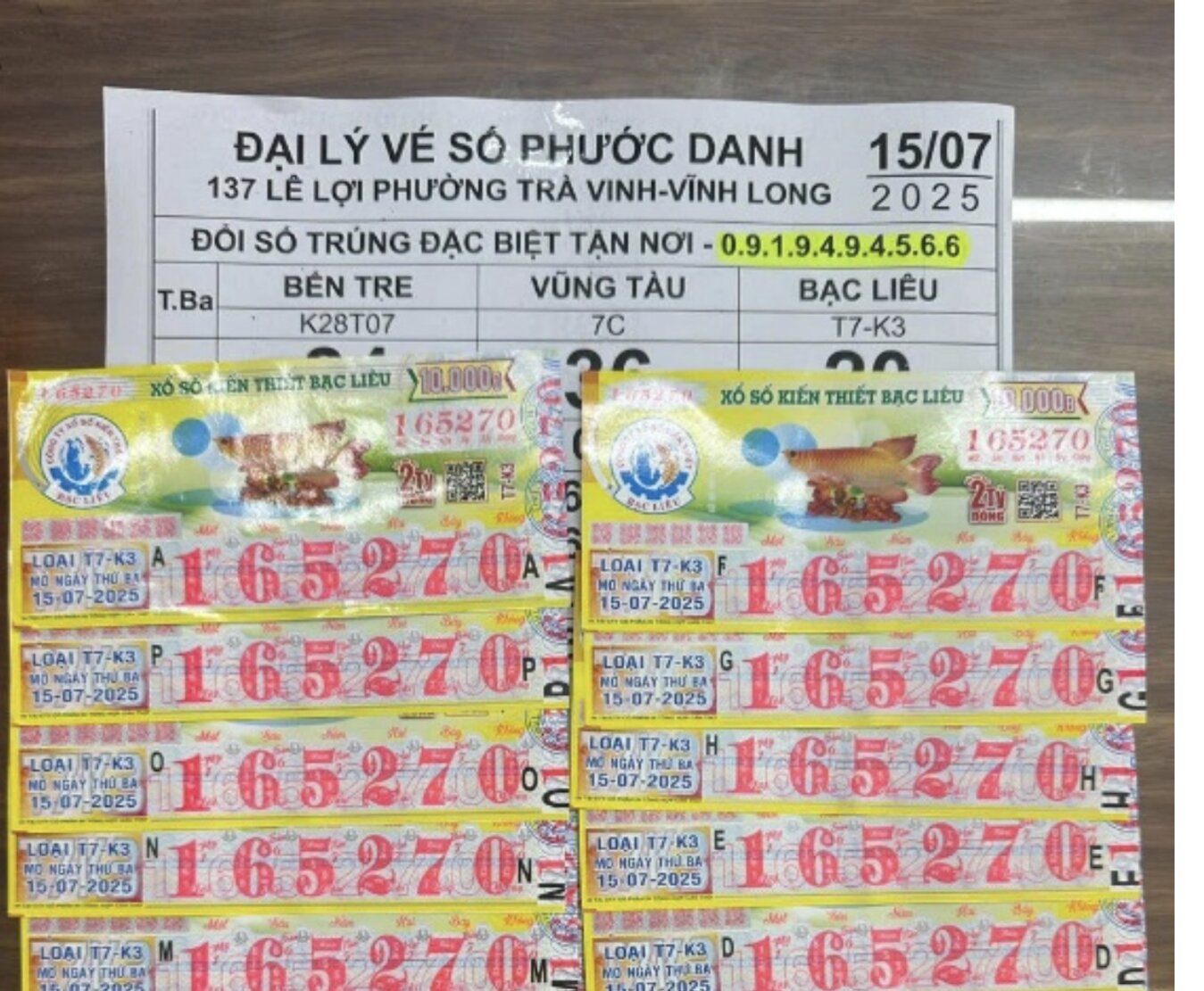 Theo đó, 14 tờ vé số có dãy số 165270 thuộc đài Bạc Liêu mở thưởng xổ số miền Nam 15/7 trúng giải an ủi. Giải độc đắc của đài này thuộc về dãy số 865270. Theo đó, tổng số tiền trúng số là 700 triệu đồng (chưa trừ thuế). Với người trúng giải, đây là giải thưởng lớn mà anh chưa từng nghĩ sẽ nhận được.
