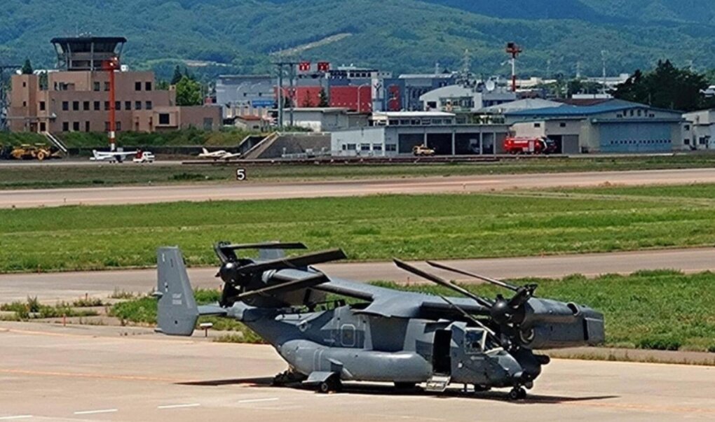 Máy bay quân sự Osprey của Mỹ hạ cánh khẩn cấp xuống sân bay Hanamaki, tỉnh Iwate, Đông Bắc Nhật Bản.