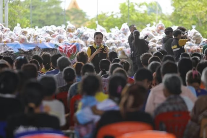 Bộ trưởng Giáo dục Thái Lan Narumon Pinyosinwat tới tỉnh Surin ủng hộ người dân sáng 26/7/2025. Ảnh: FB nhân vật