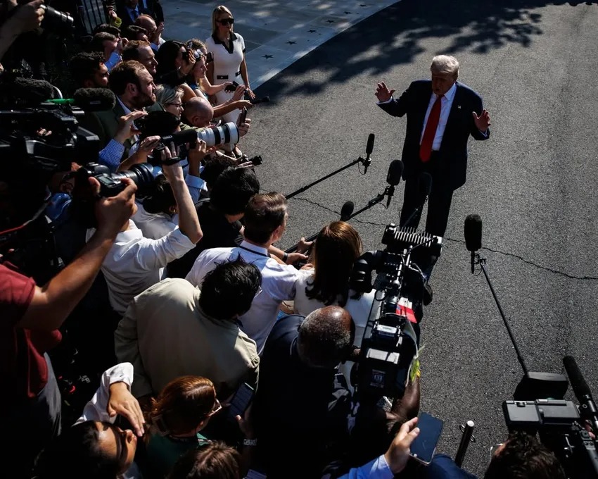 Tổng thống Mỹ Donald Trump trả lời báo giới tại Nhà Trắng hôm 25-7. Ảnh: SIPA USA