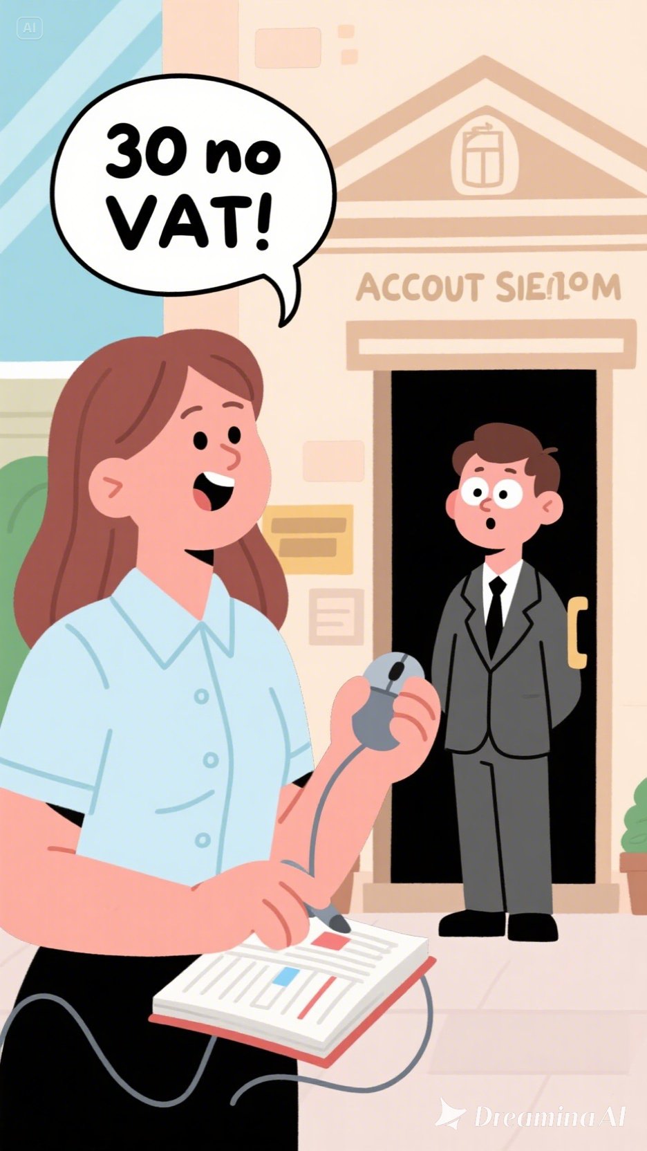 — "Thì đúng rồi còn gì, anh phải hiểu là em 30 chưa có thuế VAT, tức là phải cộng thêm 10% nữa… Thôi ký đi cưng."