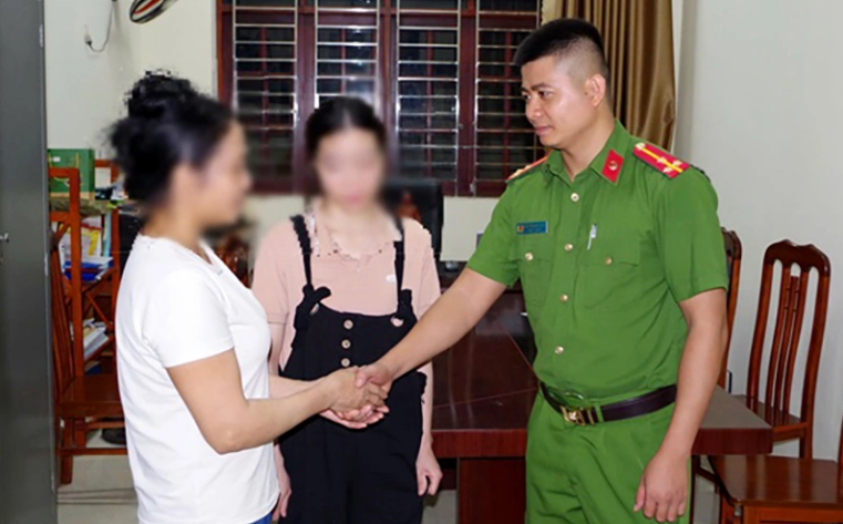 Công an phường ở Ninh Bình giải cứu nạn nhân, bàn giao cho gia đình. Ảnh: Hoa Lư