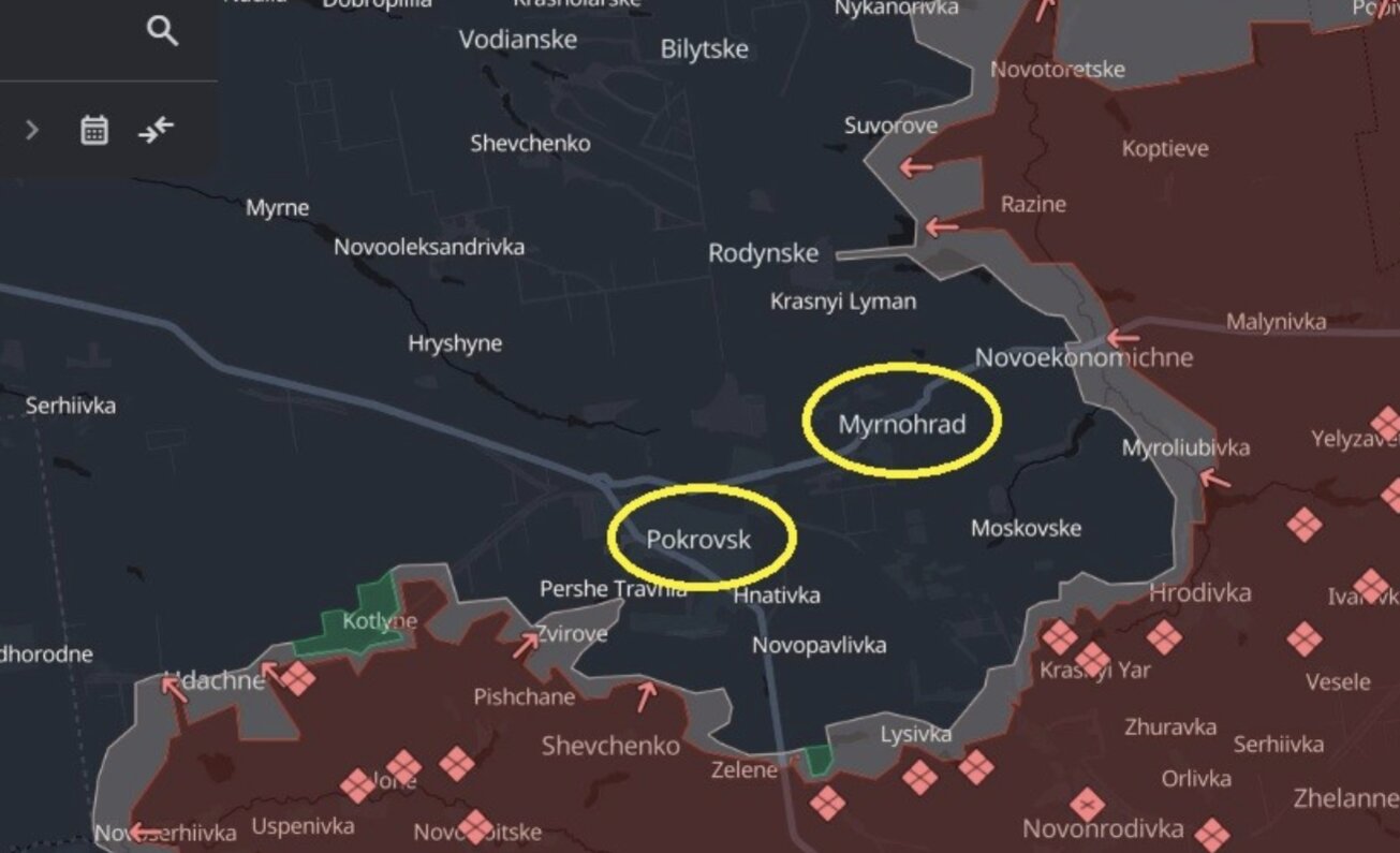 Trong khi đó, mũi tấn công ở hướng bắc của quân Nga cũng đã tiến tới Rodynske và Krasnyi Lyman, bao vây cả Pokrovsk và Myrnohrad từ phía bắc. Lực lượng Nga ở hướng này cũng chỉ cách nội đô từ 2-3km.