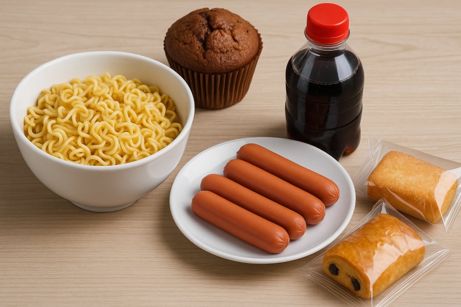 Ngày nay, giữa nhịp sống bận rộn, nhiều người chọn cách ăn uống tiện lợi bằng các loại thực phẩm chế biến sẵn. Ḿ gói, xúc xích, bánh ḿ đóng gói, nước ngọt có ga, pizza đông lạnh… tất cả đều nằm trong nhóm thực phẩm siêu chế biến (Ultra-Processed Foods – UPF). Nhóm này được đặc trưng bởi việc chứa nhiều phụ gia công nghiệp như chất bảo quản, tạo màu, tạo mùi, chất ổn định và các thành phần hiếm khi thấy trong gian bếp gia đ́nh.