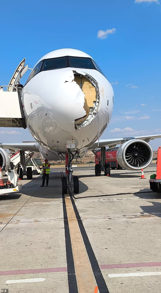 Cú va chạm đã làm một phần mũi máy bay bị vỡ (Nguồn: X)