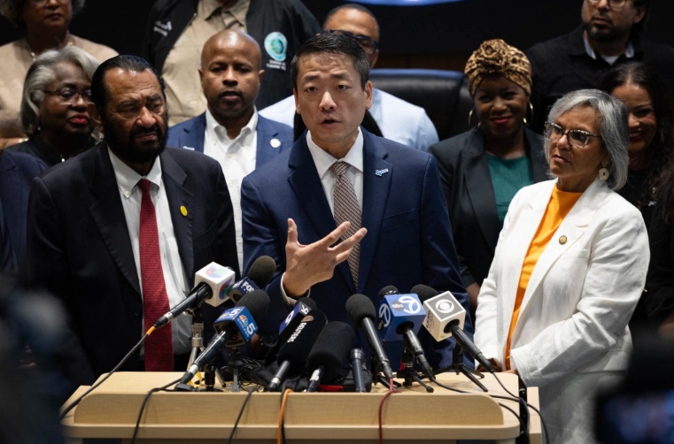 Gene Wu, lãnh đạo Dân chủ tại Hạ viện bang Texas, phát biểu ở bang Illinois ngày 4/8. Ảnh: AFP