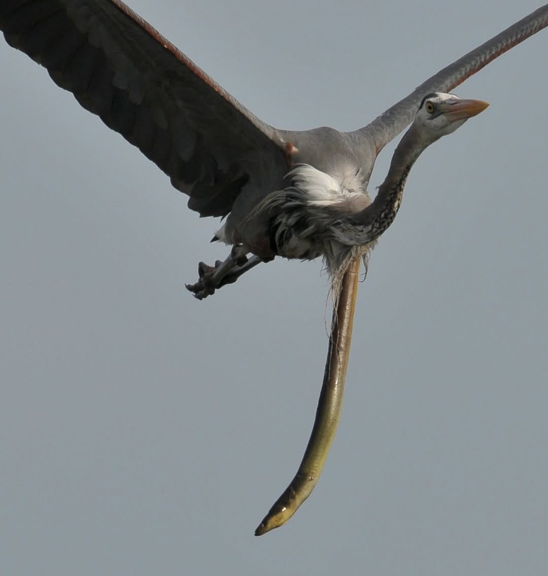 Hình ảnh cận cảnh con lươn chui ra từ cổ con diệc