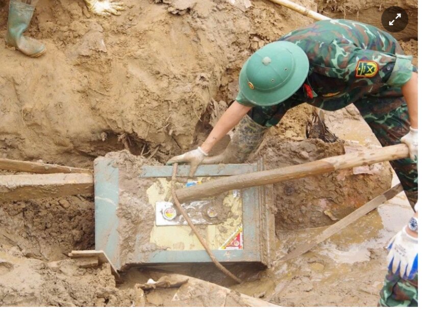 Old  Default Cào bùn lũ, bộ đội tìm thấy két sắt chứa nhiều tài sản giá trị