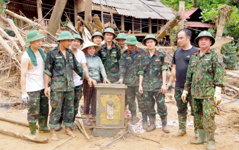 “Bên trong két sắt là số tài sản rất lớn, được gia đình tích góp từ nhiều năm qua. Cảm ơn các chú bộ đội đã hỗ trợ người dân khắc phục hậu quả trận lũ và chăm lo cuộc sống cho nhân dân”, chị Lô Thị Xuân nói.