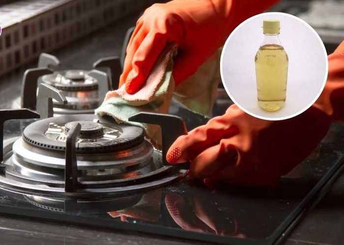 Pha giấm với nước theo tỷ lệ 1:1, xịt lên bếp và để 2 – 3 phút. Lau lại bằng khăn ẩm, vừa sạch vừa khử mùi hôi dầu mỡ. Lưu ý, không dùng giấm trên bề mặt đá cẩm thạch hoặc đá tự nhiên vì có thể làm mờ bề mặt.