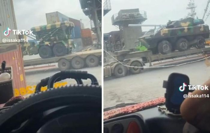 Những phương tiện quân sự này được phát hiện tại một bến cảng và xuất hiện trong một video do tài khoản TikTok có tên "issaka114" đăng tải, cho thấy nhiều thiết bị mới được giao được sơn màu ngụy trang sa mạc và rừng nhiệt đới.