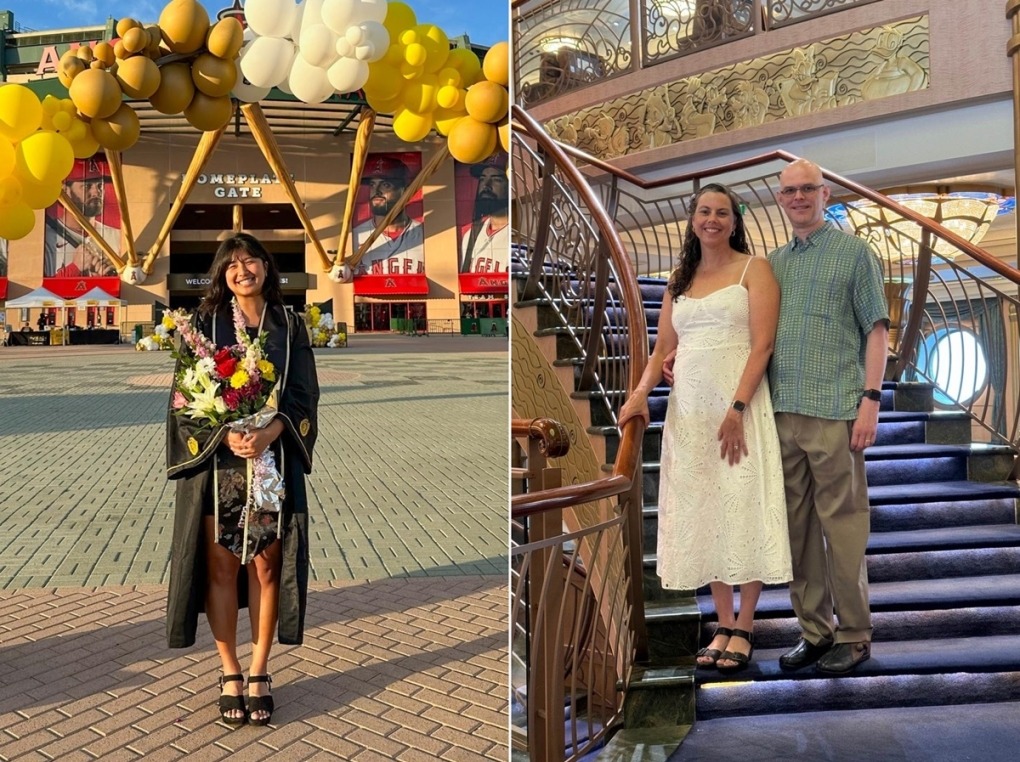 Ảnh trái, Grace Ahn trong lễ tốt nghiệp tại Đại học California State, Long Beach. Ảnh phải, Craig Allen và vợ trên một chuyến du thuyền vào mùa hè năm 2024. Ảnh: WSJ