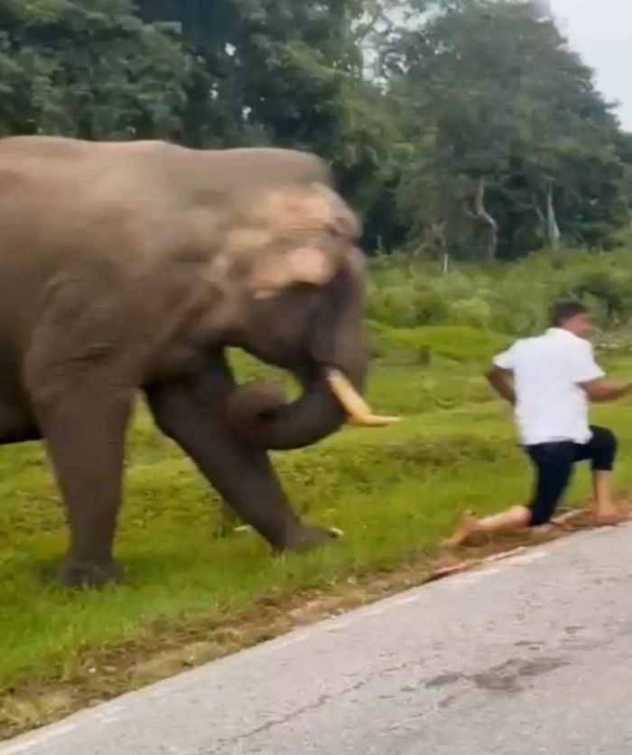 Một du khách ở Ấn Độ bị voi rừng rượt đuổi và giẫm lên người chỉ vì cố chụp ảnh cùng con vật khổng lồ.
