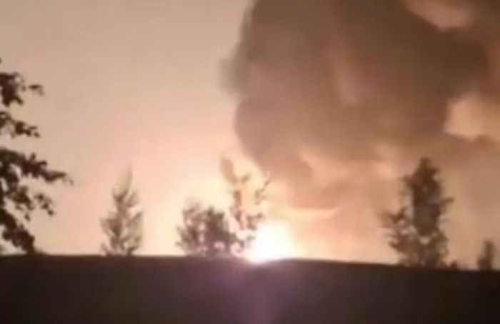 Khói bốc lên gần trạm bơm dầu Unecha ở tỉnh Bryansk của Liên bang Nga vào ngày 13/8. Ảnh: Bộ Tổng tham mưu Ukraine