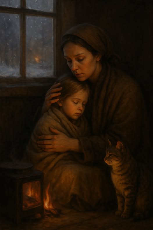 Ban đêm, cả ba cùng cuộn tròn dưới một tấm chăn cũ, chia sẻ chút hơi ấm còn lại và sự yên lặng buốt lòng.