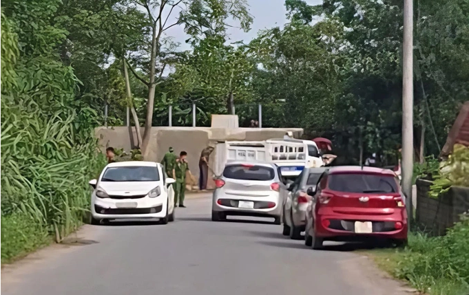 Mương nước nơi phát hiện thi thể rộng khoảng một mét, sâu 1,5 m, mực nước 30-50 cm, hai bên đường cây cối um tùm che khuất.