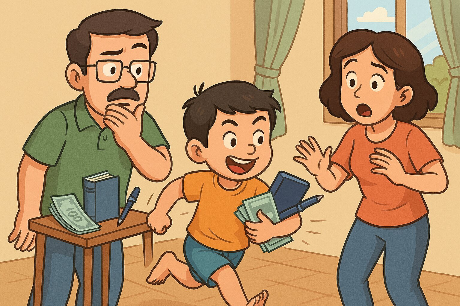 Chồng bàn với vợ: – Anh đặt lên bàn ba thứ để xem con mình sẽ lấy thứ gì. Nếu nó lấy tờ 100K, tương lai nó sẽ là nhà tài chính. Nếu lấy cây viết, nó sẽ là nhà văn, còn nếu cầm quyển kinh thì nó sẽ làm linh mục.